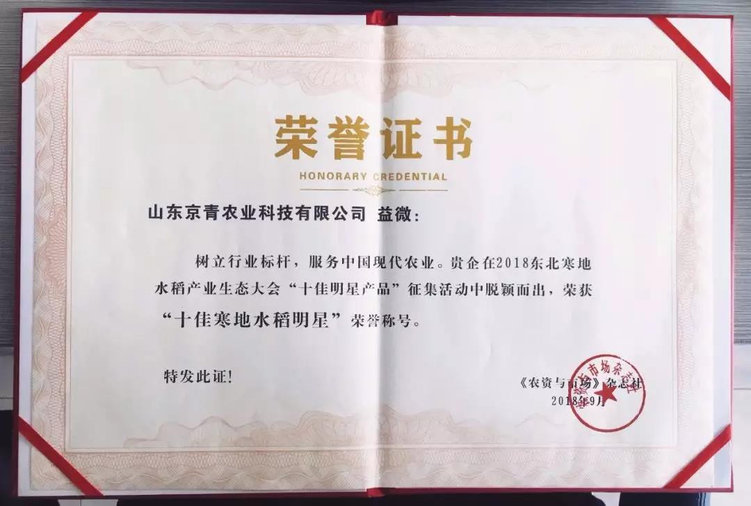 在本次會(huì)議中,益微榮獲「十佳寒地水稻明星」榮譽(yù)稱號(hào)。